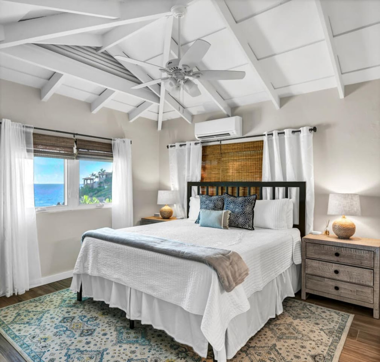 I cannot say enough wonderful things about this property. The location is very close to Cruz Bay and only a few simple minutes away from the car ferry dock. The home is open, airy, and inviting. The two tables for dining and massive living room are the perfect setting for your family gathering. If traveling with a group of couples each room has its own full bath and comfortable beds, one of the rooms also features an outdoor shower which is a great touch in this island setting. The modern touches, perfect views, pool, and private pathway down to the beach are all reasons that we will return to this home in the future.