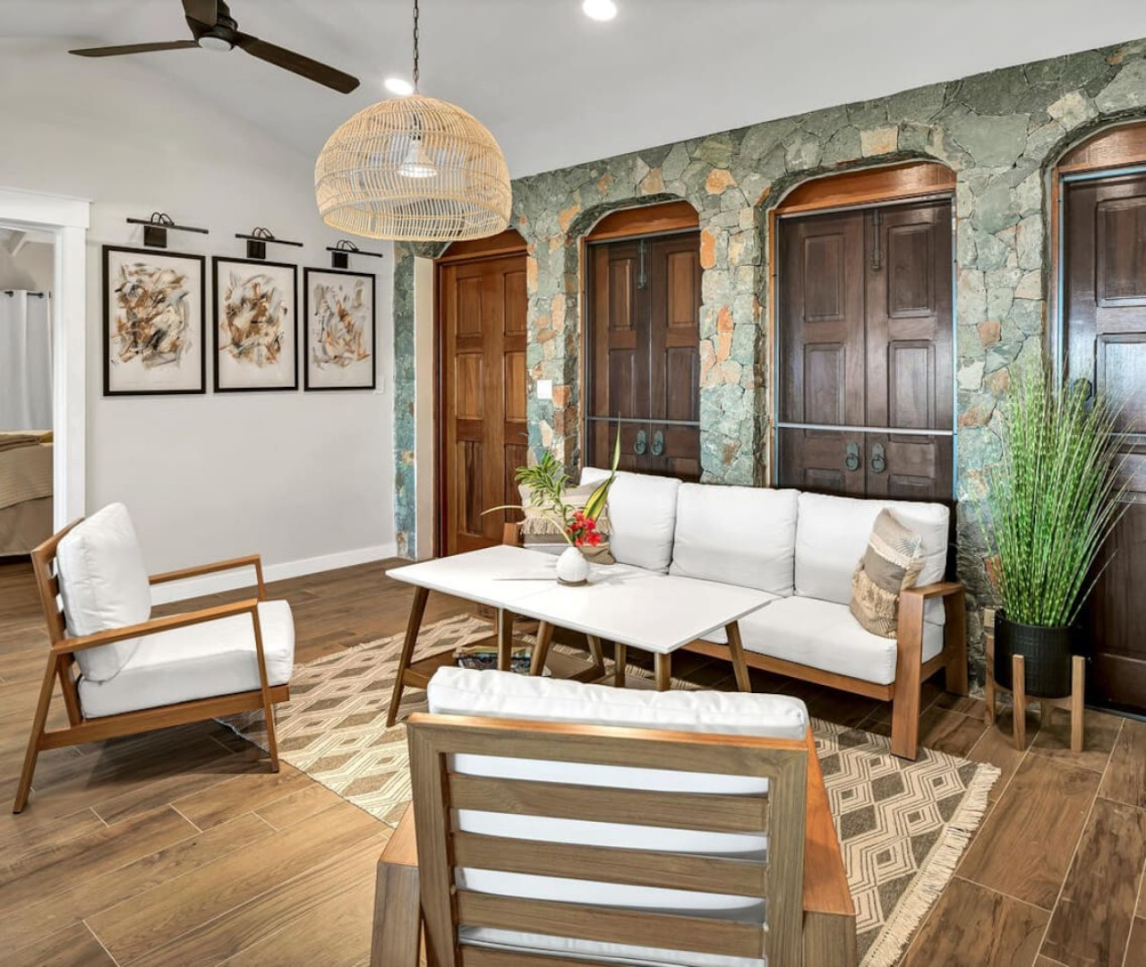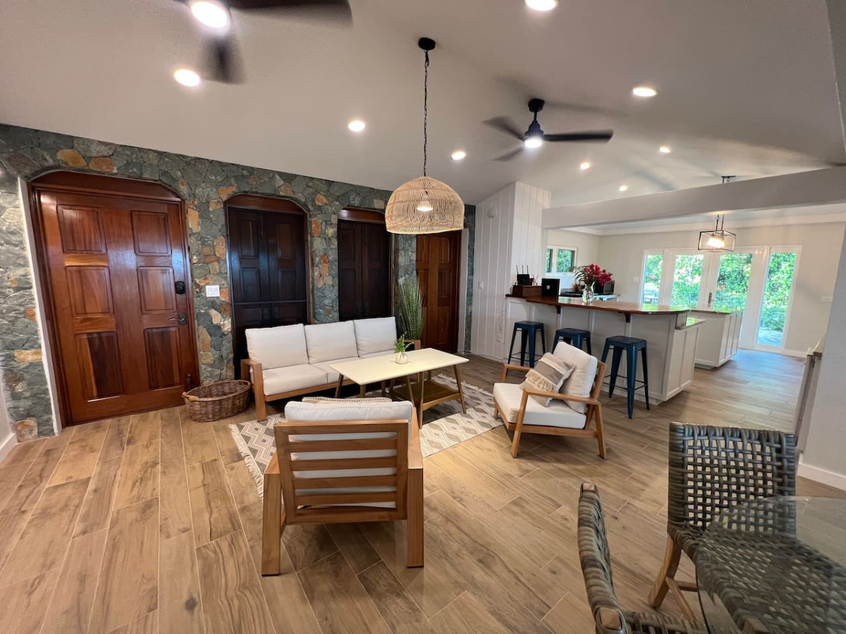 The interior of the house was spotless and very comfortable. The kitchen was well-stocked. The beds were comfortable as well as the linens. The house is located close to a great grocery store and gas stations as we heard were in short supply in some sections of the island. Rental car recommendation was spot on/ Check in with our Greeter was very nice.