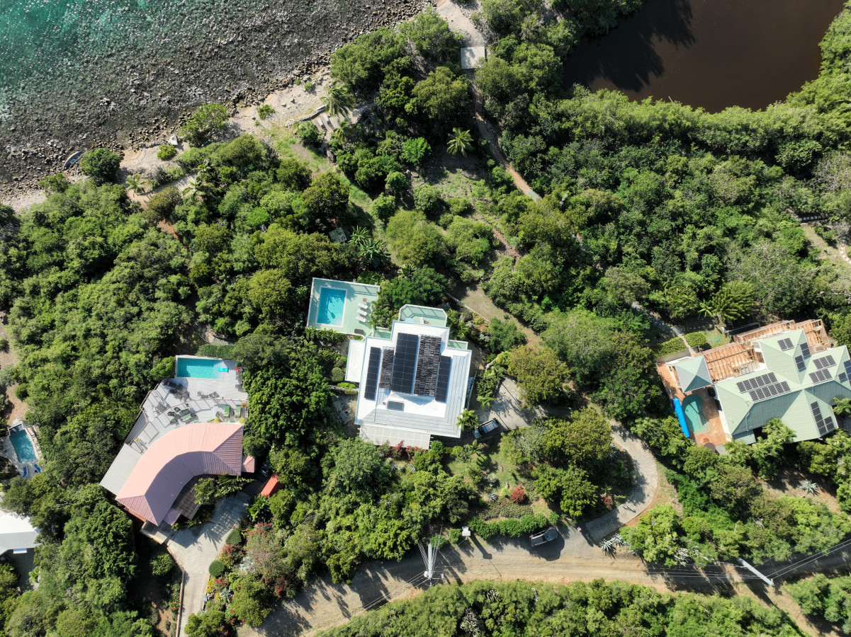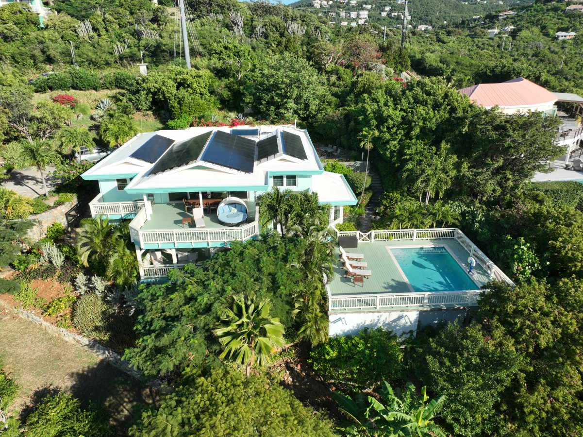 Perfect property for our group. 2 (of 5) bedrooms access from outside near pool deck. Initially thought that would be a detractor but does offer some privacy. Had power to run A/C even when grid was down for 2 days due to solar and battery backup. Kitchen had all the amenities we could have asked for including an ice machine. Coolers, snorkel gear, and beach chairs available for use. Could fit 3 jeeps in the driveway with small area to turn around, could fit more but would then need to back down the steep driveway (all roads steep in St. John). Pool perfect for kids.