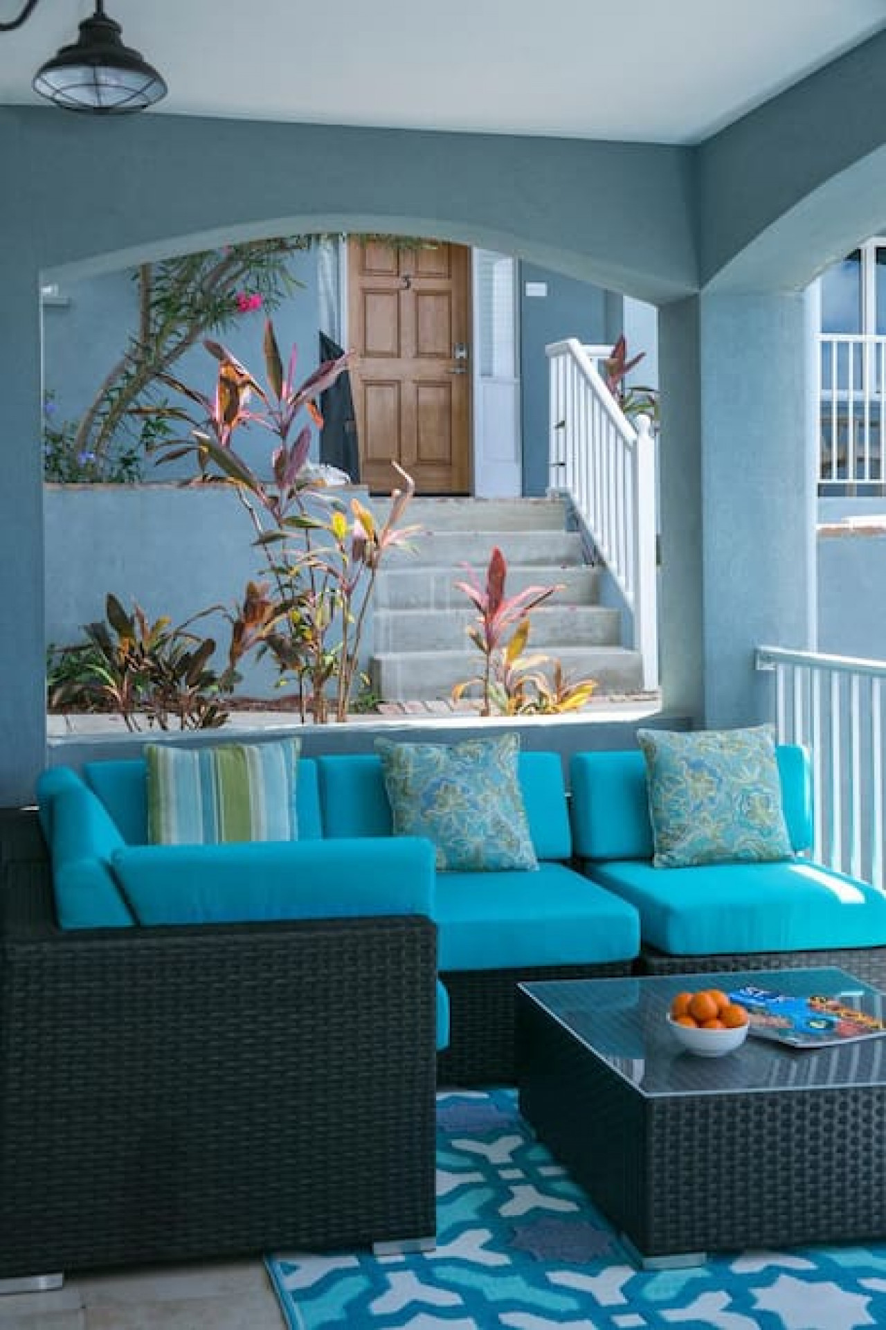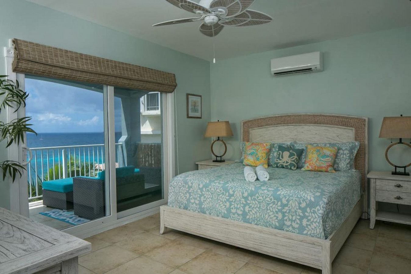 This unit was so peaceful and spacious. My friends and I were sailing for 10 days so coming to Blue Villa we needed space and real beds! Blue Villa totally delivered. There was a wonderful welcome gift upon arrival, plenty of clean towels and beach gear to travel with. AC worked great, beds comfortable, living area furniture comfortable and wonderful outdoor furniture as well. Highly suggest renting a car if available, but we couldn't get one so ended up trekking the hill a couple times a day to get back. Great workout! 10/10 would come back again!- Anonymous , Posted: 01/10/2023
